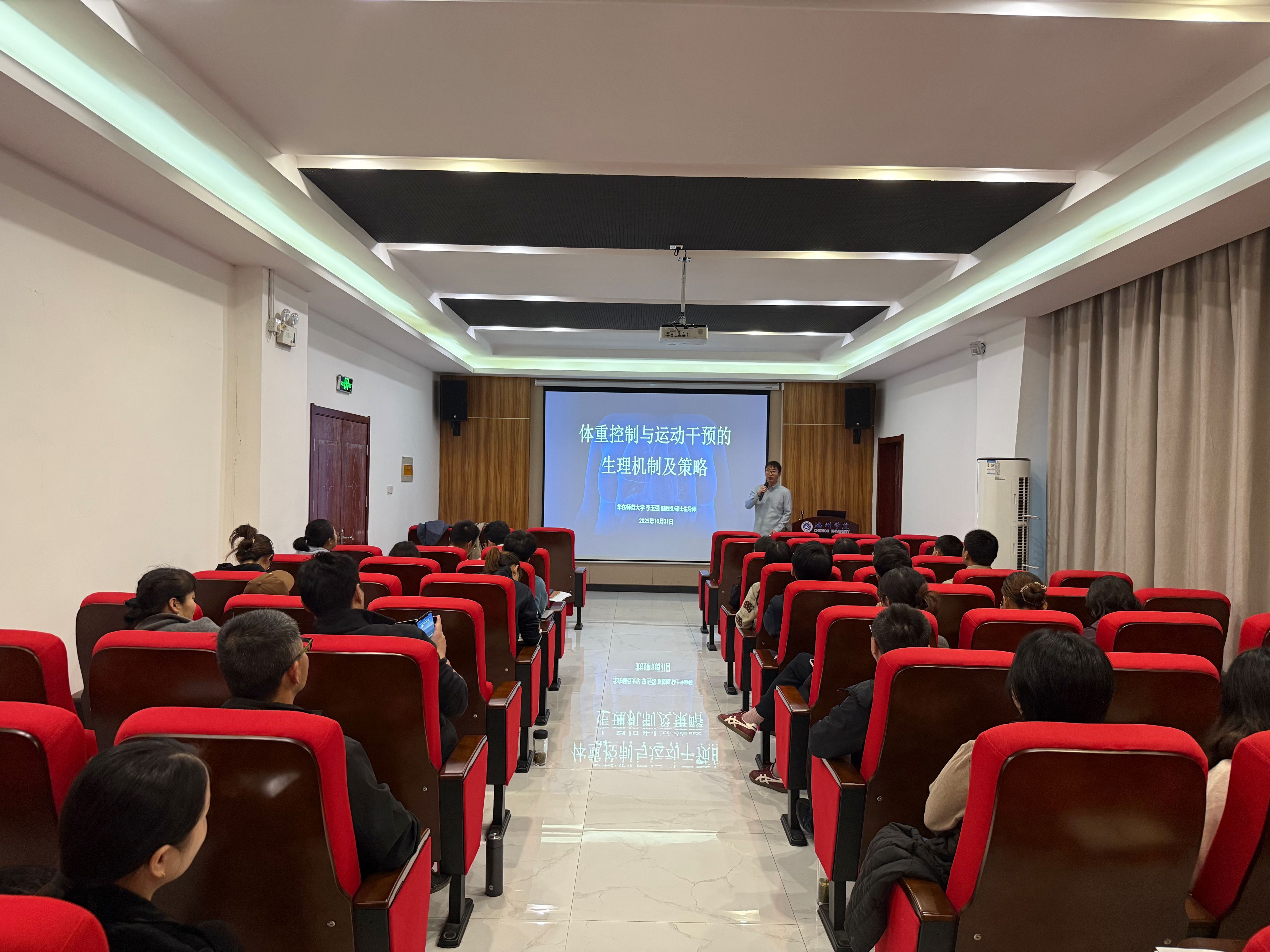 李玉强副教授作了“体重控制与运动干预的生理机制及策略”的讲座,李玉强副教授从能量代谢平衡切入,阐明肥胖引发胰岛素抵抗、慢性炎症的分子通路,对比有氧与抗阻运动在激活AMPK、提升基础代谢率上的差异,提出“HIIT+核心力量”组合策略。
