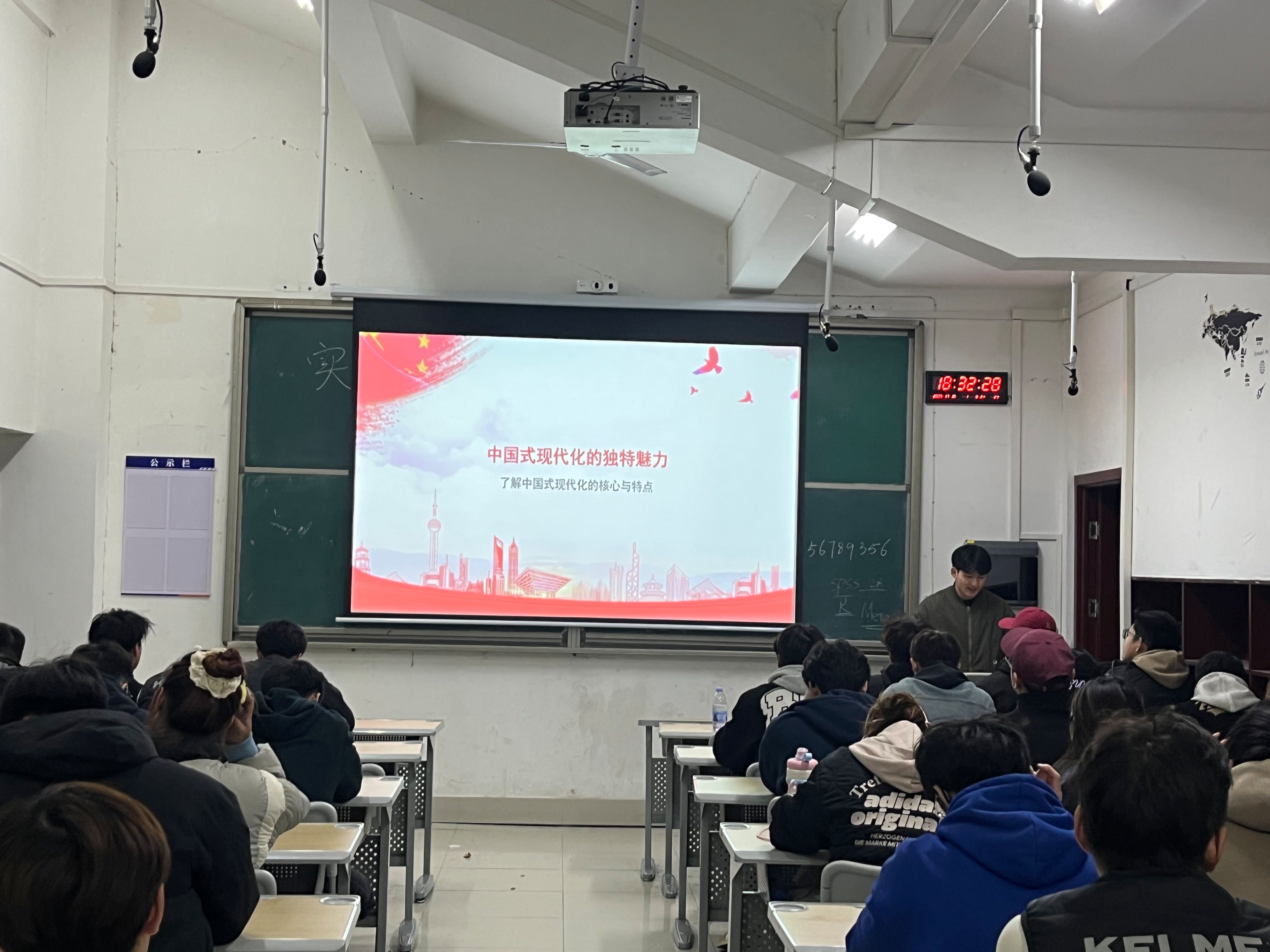为深入学习贯彻习近平新时代中国特色社会主义思想,引导学生深刻理解中国式现代化的核心内涵,增强对国家发展战略的认同感与使命感。11月10日-11日,体育学院2023级在多媒体教室开展“我与中国式现代化”主题班会。会议由辅导员陈海燕主持,全体学生参加。