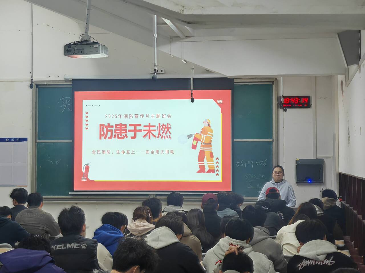 为深入学习贯彻习近平总书记关于安全生产和消防工作重要论述,切实增强学生的消防安全意识,提升应急自救能力,11月10日-11日,体育学院2023级在多媒体教室开展“全民消防、生命至上——安全用火用电”主题班会。会议由辅导员陈海燕主持,全体学生参加。